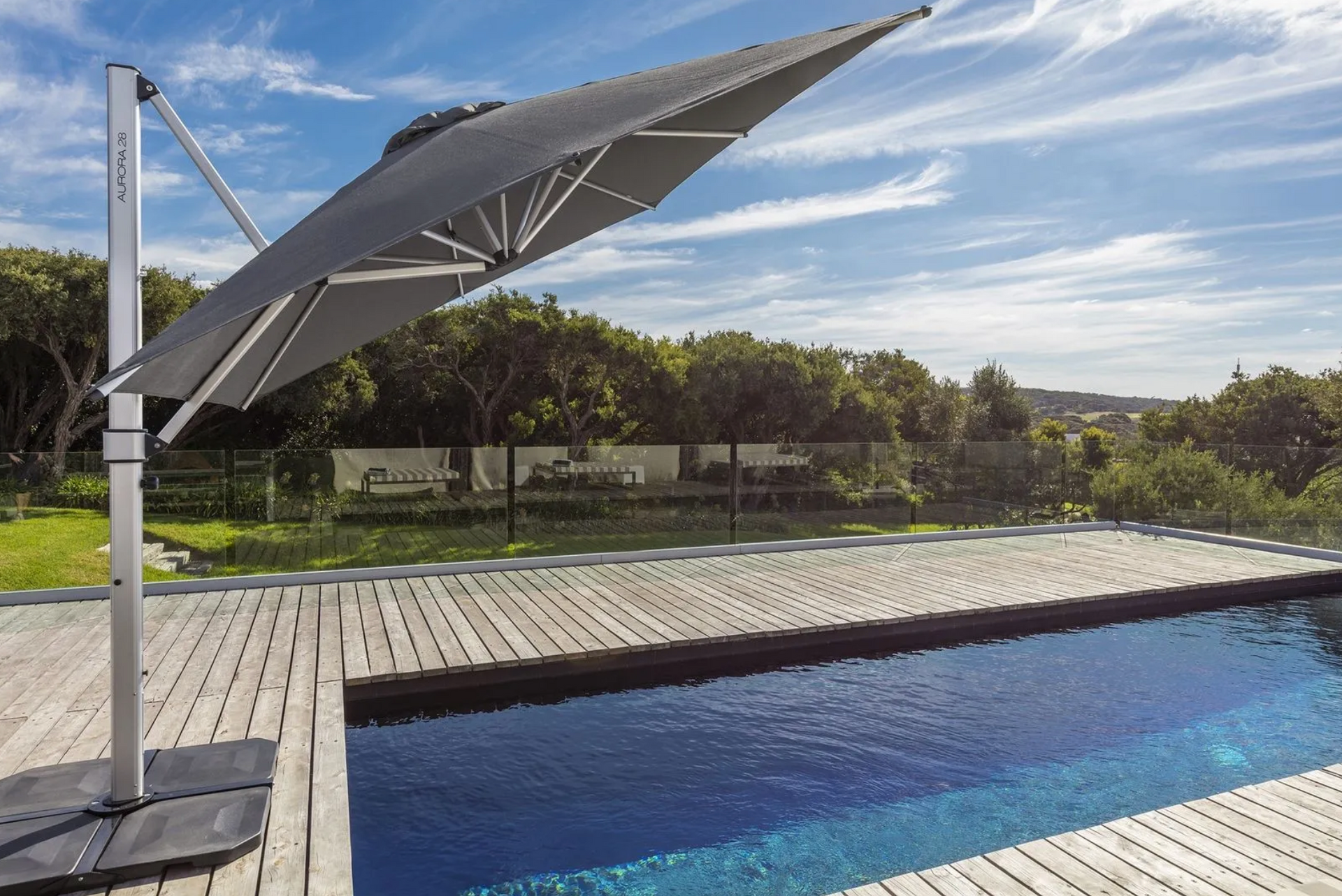 We sell two kinds of residential cantilever umbrellas. The first product is the Eclipse, a heavy-duty option built out of marine-grade material to ensure lasting quality. With 360° rotation and two tilt positions, it offers maximum coverage. For a more compact option, try the Aurora. This umbrella offers the same range of coverage but, due to being more lightweight, boasts unlimited tilt positions. Are you unsure which umbrella is best for you? Chat with a friendly member of our team by calling (02) 6766 1799.